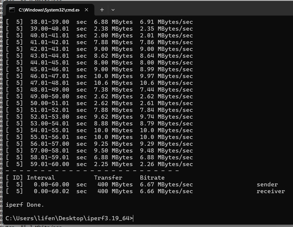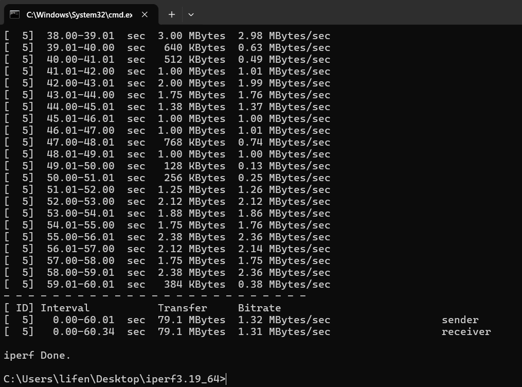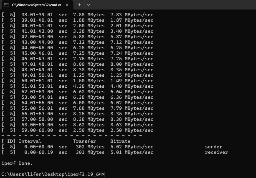 iperf3.exe -c 192.168.4.1 -f M -t 5 -p 9999